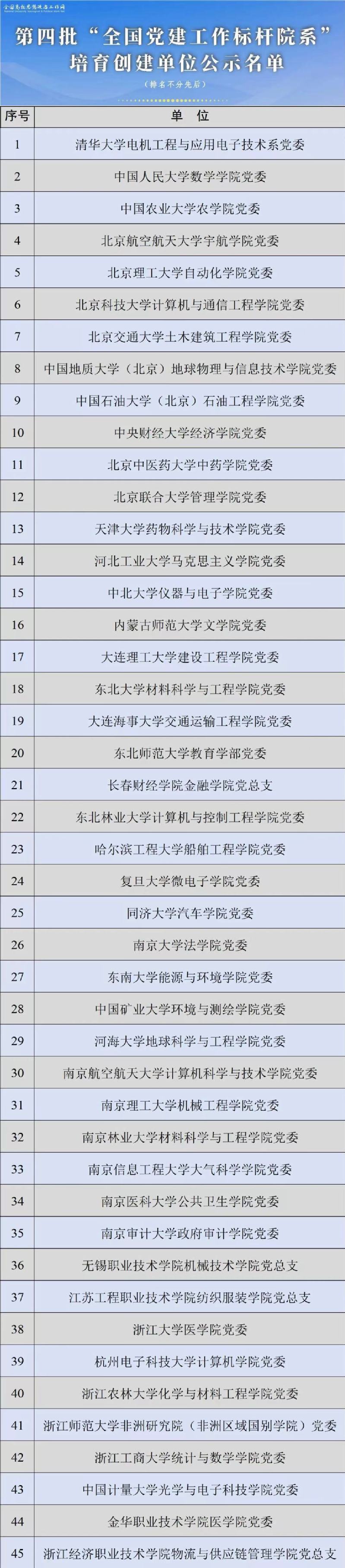 其中,杭州电子科技大学计算机学院党委进入第四批新时代高校党建示范创建标杆院系公示!(序号第39)