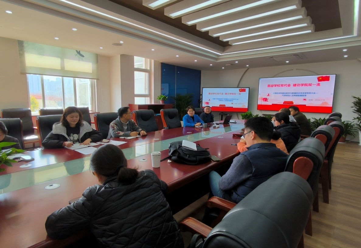 3月19日中午,计算机学院基础教学及教辅综合党支部在学院三楼会议室召开本学期第一次支部党员大会。学院党委书记金涛作为支部新成员参加会议。会议由支部书记吕长平主持。
