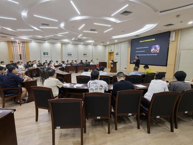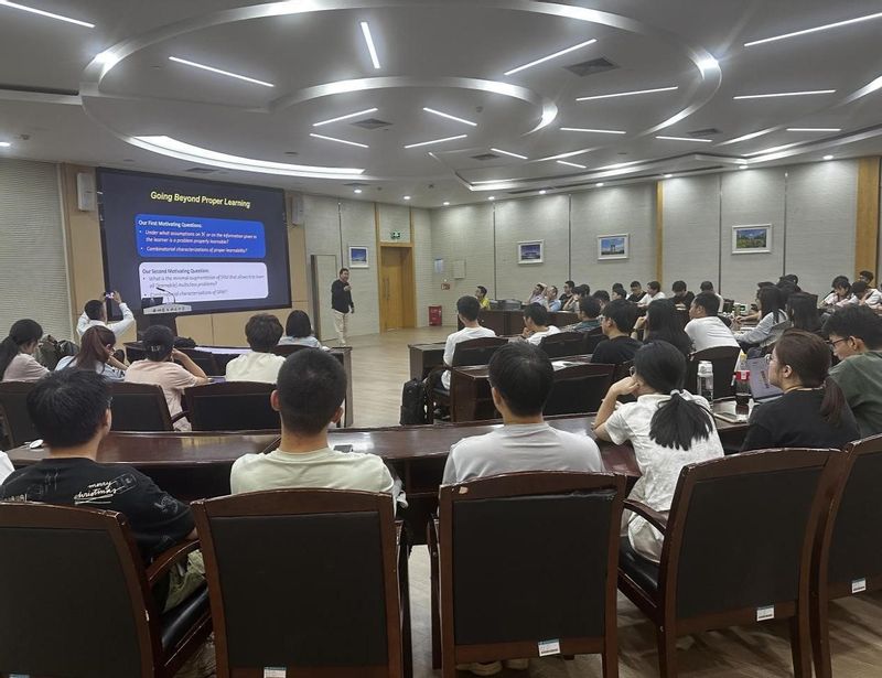 滕教授以“规范学习的可学习性与无标签数据、正则化的作用”为题,做了一场高屋建瓴、深入浅出的学术报告。报告中,滕尚华教授详细介绍了他与合作者关于正则化方法的最新研究成果。他深入阐述了正则化技术在机器学习理论中的核心地位,指出,当经验风险最小化(Empirical Risk Minimization, ERM)这一经典学习算法在某些场景下失效时,正则化成为解决多类别学习问题的关键手段。通过引入单包含图(One-Inclusion Graphs, OIGs)这一创新工具,滕教授展示了如何将奥卡姆剃刀原则、最大熵原理和贝叶斯推理等经典理论有机融合,构建出一个基于最大熵规划的最优学习算法。