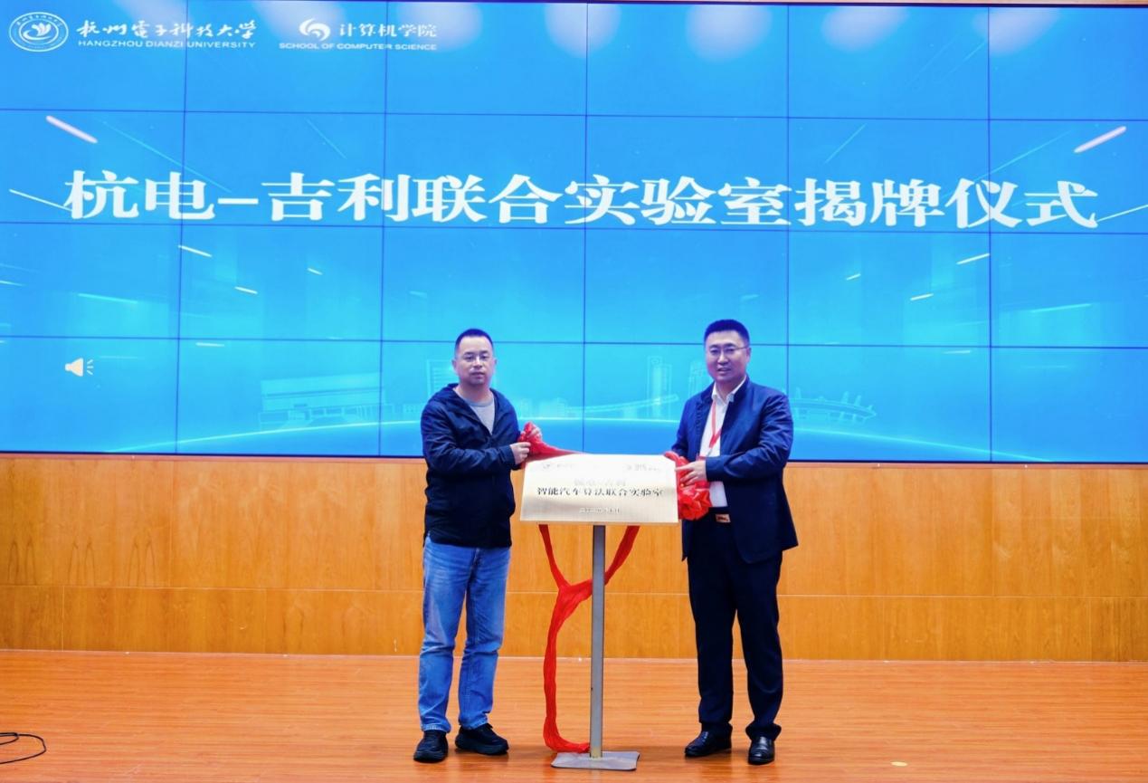 大会期间,“杭电-吉利联合实验室”正式揭牌成立,标志着校企双方在关键核心技术领域的协同攻关迈入全新阶段。该实验室由杭州电子科技大学与吉利创新中心联合共建,将聚焦前沿方向,增强协同创新的合力,开展联合技术攻关,加快产出社会所盼的科研成果。吉利创新中心总监邵赟先生与杭州电子科技大学产学研融合发展中心主任李虎共同为实验室揭牌。