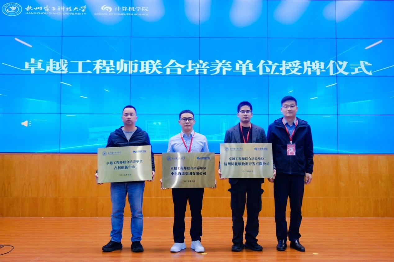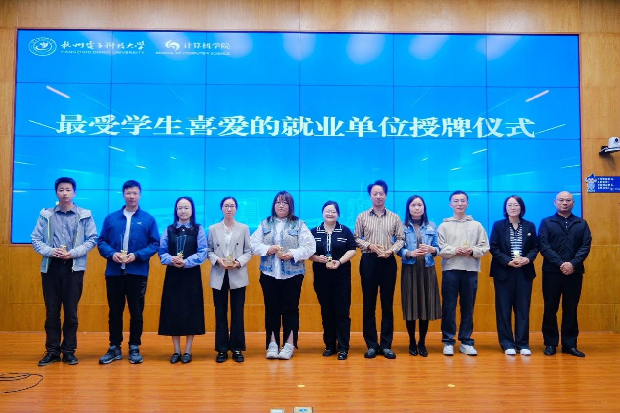 为深化产教融合、强化实践育人,大会还举行了“卓越工程师联合培养单位”和“最受学生喜爱的就业单位”授牌仪式,校研究生院长范影乐为中电海康和同花顺颁发“卓越工程师联合培养单位”。校招生就业处副处长卢峰为华为、网易、腾讯、字节、海康威视、大华、恒生、迪普、建行、移动颁发十佳单位。此举也彰显了杭电计算机学院紧密对接产业需求、推动教育链、人才链与产业链有机衔接的坚定决心。