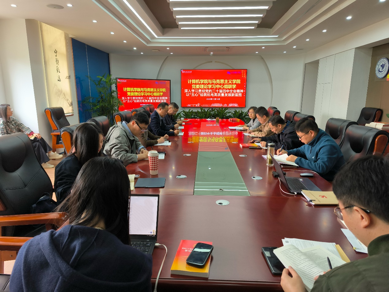 2025年11月14日上午,计算机学院与马克思主义学院党委理论学习中心组联合学习在计算机学院317会议室举行,两个学院的党委委员、理论学习中心组成员、计算机学院支部书记及辅导员参加学习。学校宣传部宣教科科长赵天鹏到会旁听并指导。