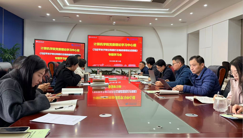 3月16日上午,计算机学院召开党委扩大会议暨理论学习中心组专题学习会。学院党委委员、理论学习中心组成员、各教工支部书记及全体辅导员参加会议。会议由学院党委书记金涛主持。